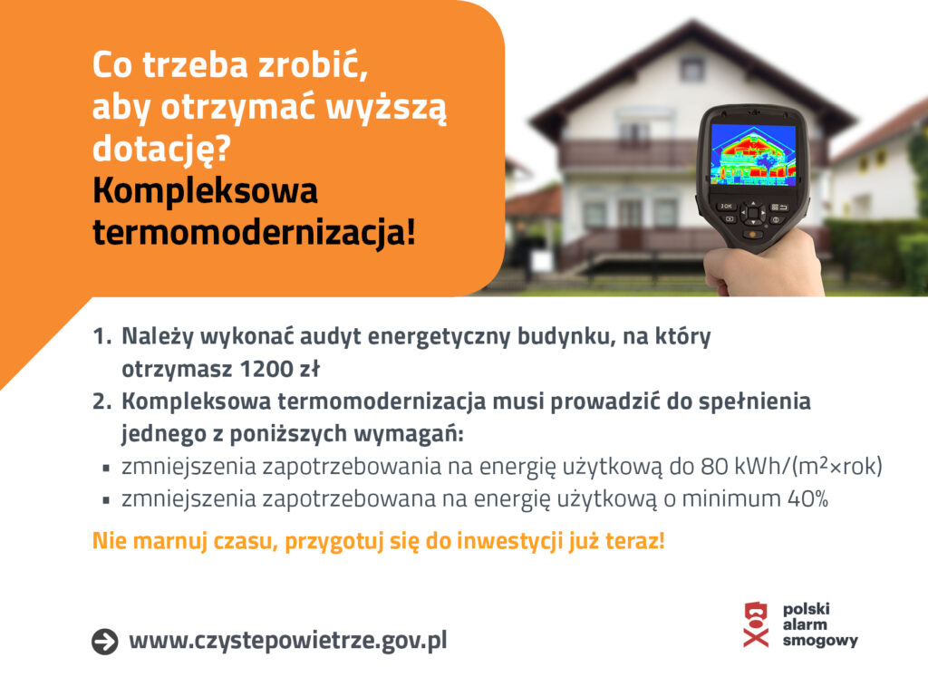 Wymiana starych i nieefektywnych kotłów i pieców na węgiel i drewno na nowoczesne źródła ogrzewania oraz termomodernizacja budynków (np. ocieplenie ścian i stropów, wymiana okien, drzwi, rekuperacja).